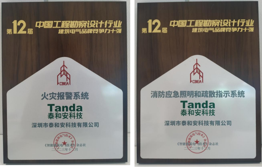 12月15日,中國建筑節(jié)能協(xié)會電氣分會2023年會在蘇州召開,會中發(fā)布了由中國勘察設(shè)計協(xié)會電氣分會、中國建筑節(jié)能協(xié)會電氣分會主導(dǎo)的《第十二屆中國工程勘察設(shè)計行業(yè)?建筑電氣品牌競爭力十強》評選結(jié)果,泰和安分別榮獲“火災(zāi)報警系統(tǒng)”、“消防應(yīng)急照明和疏散指示系統(tǒng)”品牌競爭力十強。
