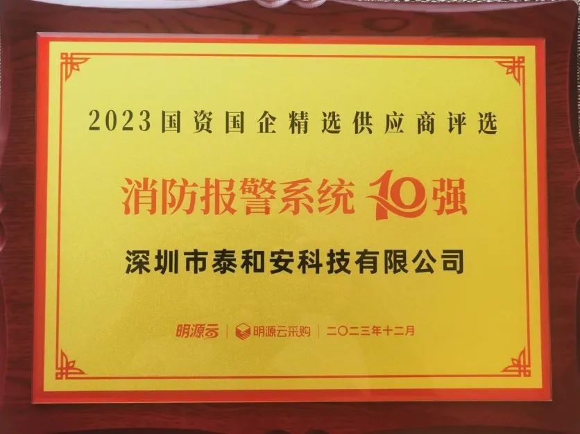泰和安再次榮登“2023國資國企精選供應商十強(消防報警類)”榜單,可謂實至名歸,再一次證明了泰和安在行業(yè)、市場及客戶對泰和安品牌實力的高度認可與信賴,同時也彰顯了泰和安堅持以技術(shù)創(chuàng)新的競爭優(yōu)勢及卓越的服務能力。面對即將到來的2024年,泰和安將會繼續(xù)以技術(shù)創(chuàng)新為核心,把握行業(yè)機遇,全心全意為品牌地產(chǎn)提供優(yōu)質(zhì)的產(chǎn)品與服務,與更多優(yōu)秀房企攜手合作,為全社會的消防安全做出更大貢獻。